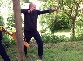 sowie ein Ziel verfolgen - beim Üben mit Langbögen. |
