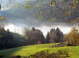 ist umgeben von Hangwiesen und Wäldern mit einem herrlichen
